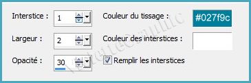 9 - Effets/Effets de Texture/Textile avec ces réglages: couleurs : #027f9c/ #ffffff