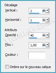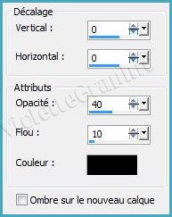 **Effets/Effets 3D/Ombre Portée :1/1/40/1/couleur #ffffff