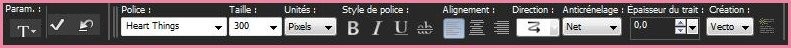 2 - Activer l'outil  Texte/Police Heart Things/taille : 300/ vectoriel/crénage : 0