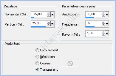 4  - Effets/Effets de Distorsion/Vagues réglages suivants :