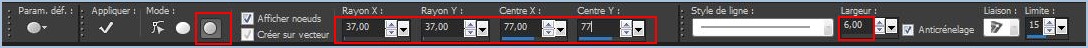 20 - Activer l'outil forme ellipse /cercle/ style de ligne: plein/ largeur : 6 pixels