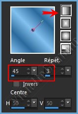 2 - Placer en avant-plan la couleur #83c2ef et en arrière-plan la couleur #2a699c**Configurer un dégradé linéaire angle: 45°/Répétitions : 3