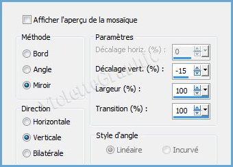 5 - Effets/Effets d'image/Mosaïque sans jointure réglages suivants :