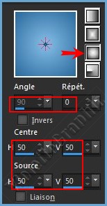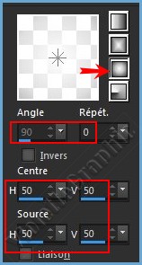 **remplir de dégradé linéaire angle : 90/ répétition : 0