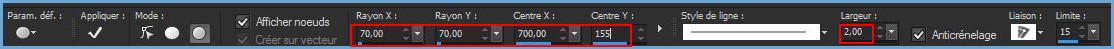 Tracer votre cercle et vérifier les données : 70/70/700/155