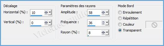 **Effets/Effets de Distorsion/Rayonnement réglages suivants :