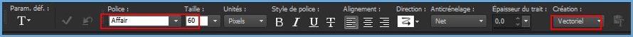 25 - Activer l'outil Texte/Police Affair /taille : 60/ vectoriel/crénage : 25 avant-plan fermé/couleur arrière-plan #235075