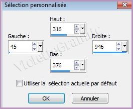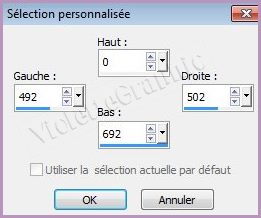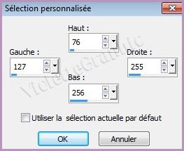 14 - Activer le calque supérieur**Calques/Nouveau calque Activer l'outil sélection/clic sur Sélection Personnalisée Placer ces chiffres :