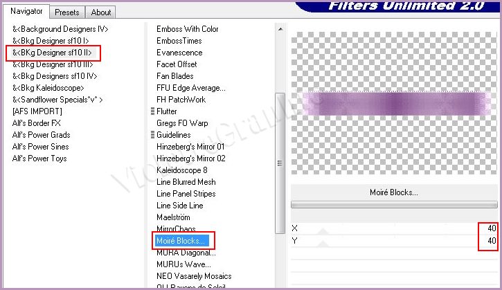 9 - Effets/& BKG Designers sf10 II > Moiré Blocks.. réglages suivants: