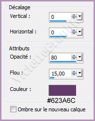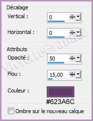 **Effets/Effets 3D/Ombre Portée : 0/0/50/15/couleur #623a6c