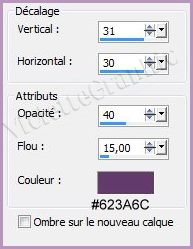 **Effets/Effets 3D/Ombre Portée : 31/30/40/15/couleur #623a6c