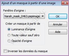 ** Activer le masque Narah_mask_0463.jpg Couches/Nouveau calque de masque/à partir d'une image/Ajout d'un masque à partir d'une image sélectionner le masque Narah_mask_0463.jpg cocher luminance d'origine