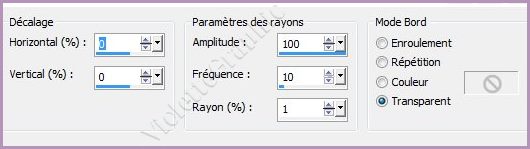 **Effets/Effets de Distorsion/Rayonnement réglages suivants :