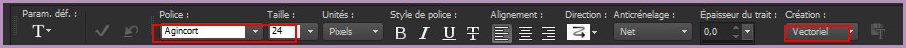 27 - Activer l'outil Texte/Police Agincort/taille : 24 /vectoriel/crénage : 75 avant-plan fermé /couleur arrière-plan #c3a3c9 Entrer le texte : **clic sur Appliquer **Objet/Aligner/Center verticalement sur le support **Calques/Transformer en calque raster ** Effets/Effets 3D/Ombre Portée : 2/2/40/2/couleur #000000