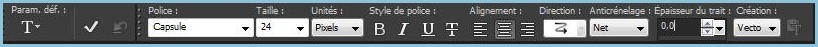 18 - Activer l'outil  Texte/Police Capsule/taille : 24/ vectoriel/crénage : 50
