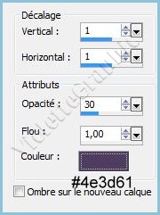 19 - Effets/Effets 3D/Ombre Portée : 1/1/30/1/couleur #4e3d61