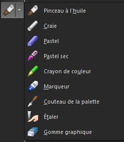 côté de certains outils s'affiche un menu d'autres outils que l'on découvre en