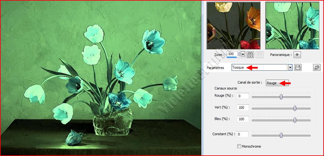 5 - Réglage/Couleur/Mélange des canaux réglages suivants : Toxique