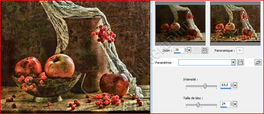 Entrez ou définissez une valeur dans la zone Intensité Utilisez la valeur la plus faible permettant d’obtenir un résultat satisfaisant Les valeurs trop élevées peuvent provoquer l’apparition d’artefacts indésirables sur la photo Cliquez sur OK