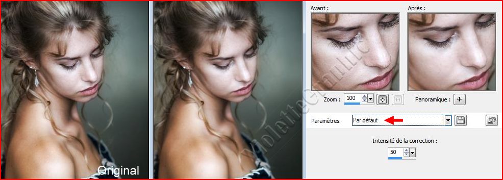 Entrez ou définissez une valeur dans la zone Intensité de la correction pour définir l’intensité de la correction Les valeurs faibles suppriment des quantités de bruit minimes, mais préservent les zones texturées Les valeurs élevées suppriment davantage de bruit, mais ne préservent pas complètement les zones texturées Cliquez sur OK ***