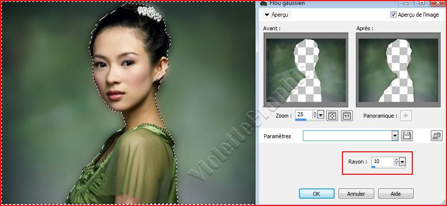 2 - Réglages/Flou/Flou gaussien réglages suivants: Rayon 8