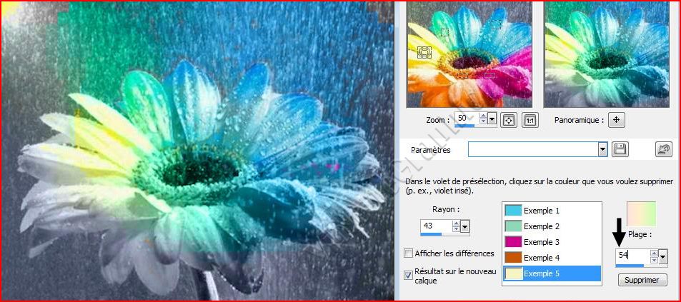 **Dans le volet gauche sélectionner les couleurs à corriger en traçant des petits rectangles chaque couleur s'inscrit dans la zone d’échantillonnage