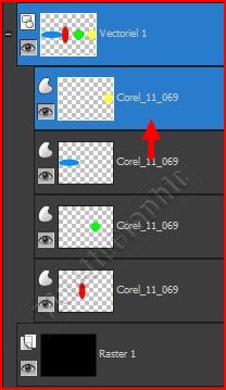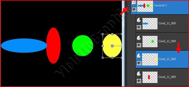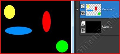 Ouvrir le signe + du calque vectoriel **vous voyez que chaque objet est placé sur un calque sélectionner l'objet jaune