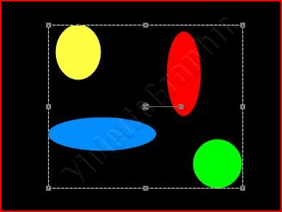 **Maintenez la touche Maj enfoncée et sélectionnez les 3 objets de droite Nous allons les répartir par rapport à l'objet jaune