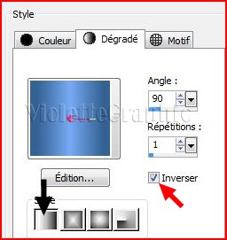**Calques/Nouveau calque remplir de dégradé linéaire angle: 90°/Répétition: 1/Inverser coché