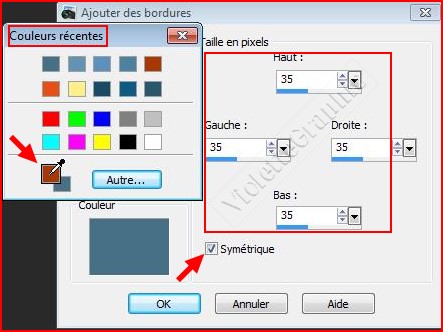 **Placer la taille : 2 pixels case symétrique cochée afin que les bordures ajoutées soient égales sur tous les côtés