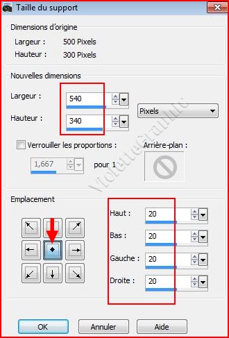2 - Image/Taille du support réglages suivants :