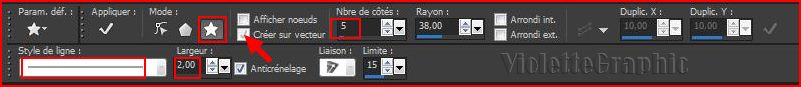 * nombre de côté : 5 côtés * choisissez un style de ligne : plein * Définir la largeur de cette ligne : 2 pixels