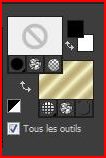9 - Ouvrir une nouvelle image transparente de 600 x 600 pixels remplir de couleur noire Installer votre palette de couleur ainsi : motif or en avant-plan et arrière-plan fermé