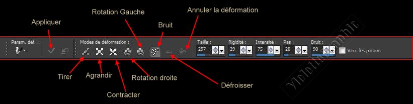 Dans la palette Options d’outils étudions les Modes de déformation dans le pavé Modes de déformation : ***