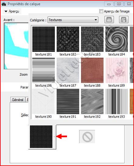 Onglet Texture du support