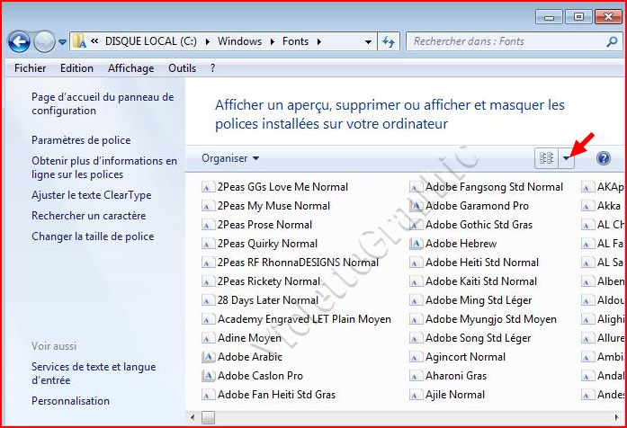 ** si vos polices sont sous forme de fichier clic sur mode d'affichage