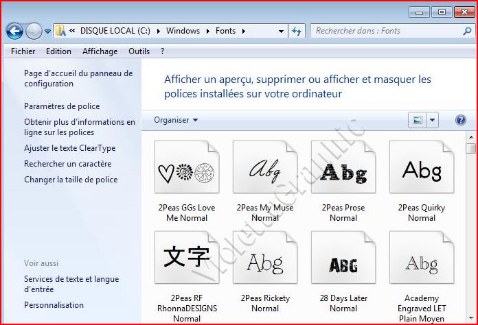 *** Les polices sont placées dans C:\ dans le dossier Fonts de Windows