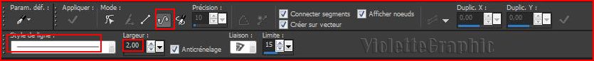 3 - Activer l'outil stylo configuré ainsi: courbe de Bézier/vectoriel / style : ligne droite/ largeur : 2