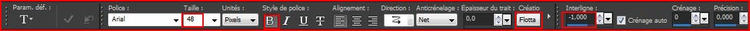 3 - Activer l'outil texte configuré ainsi : création "flottante" / interligne : -1