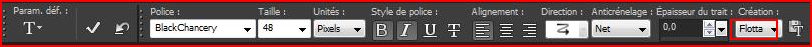 3 - Activer l'outil texte configuré ainsi Police : BlackChancery ou au choix / taille: 48/ Style: Bold/italique/ alignement gauche/ Création : flottante