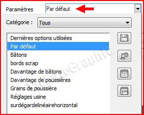 **Ouvrir la liste déroulante des différents paramètres : sélectionner le paramètre Par défaut