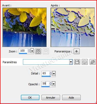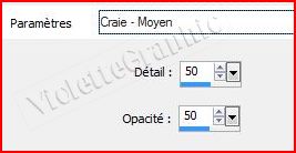 2 - Effets/Effets Arts Média/Craie de couleur : **Ouvrir la liste déroulante des différents paramètres :