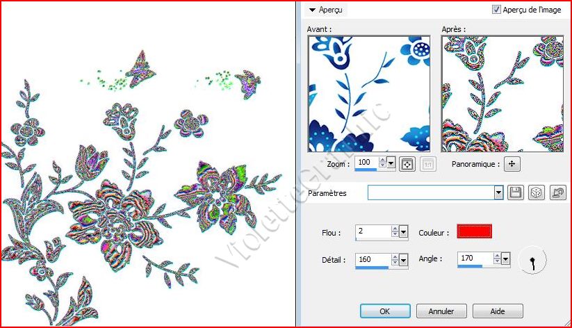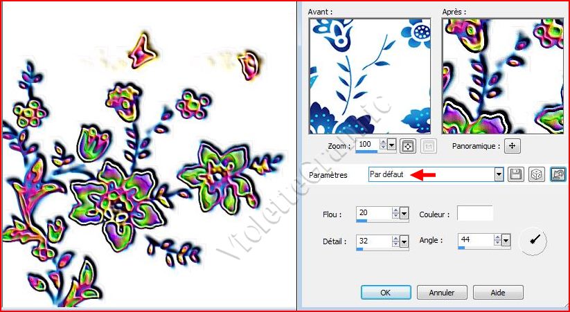3 - Avec ces réglages Flou : 2 Détails : 160 = plus de contraste de couleurs = le fond est devenu blanc