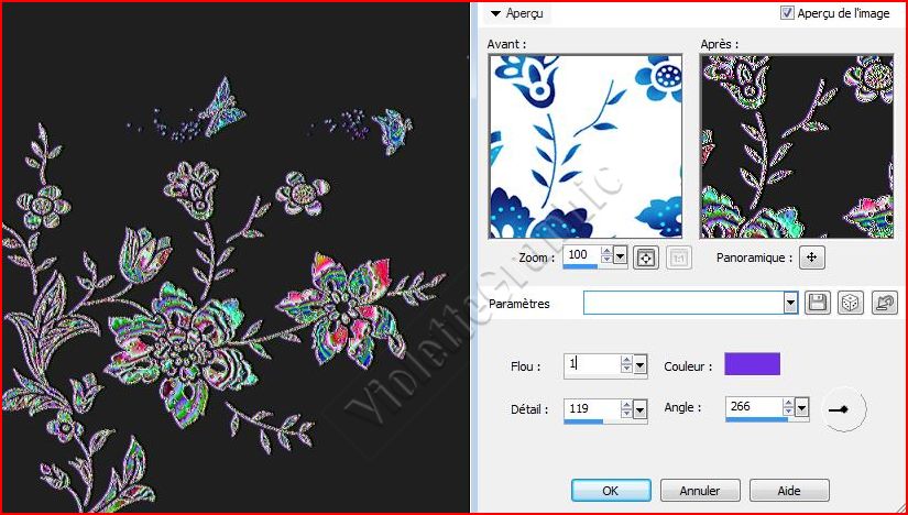4 - Avec ces réglages Flou : à 1 Détails : 5 minimum = peu de contraste de couleur