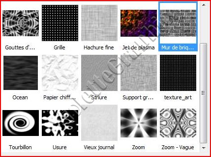 en cliquant sur la flèche vous avez de nombreuses textures à appliquer