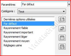 ** Effets/Effets de distorsion/Rayonnement réglages par défaut : **Ouvrir la liste déroulante des différents paramètres :
