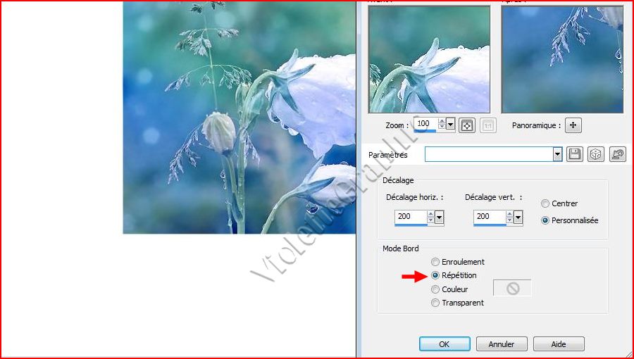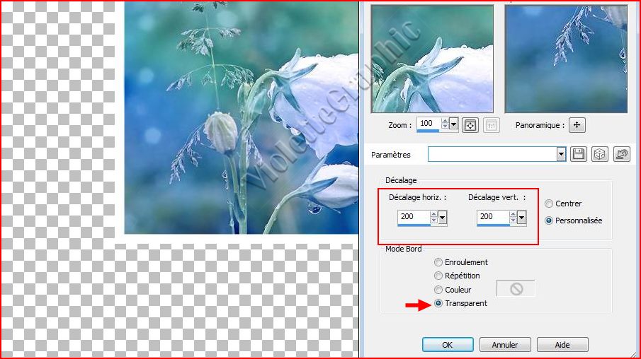*** Version PSP X5 *** Effet d'image : Décalage L’effet Décalage permet de déplacer l’image sur le support
