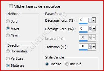 3 - Effets/Effets d'image/Mosaïque sans jointure réglages par défaut