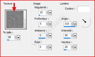 **Effets/Effets de texture/ rechercher votre texture gaufrage avec les réglages suivants :