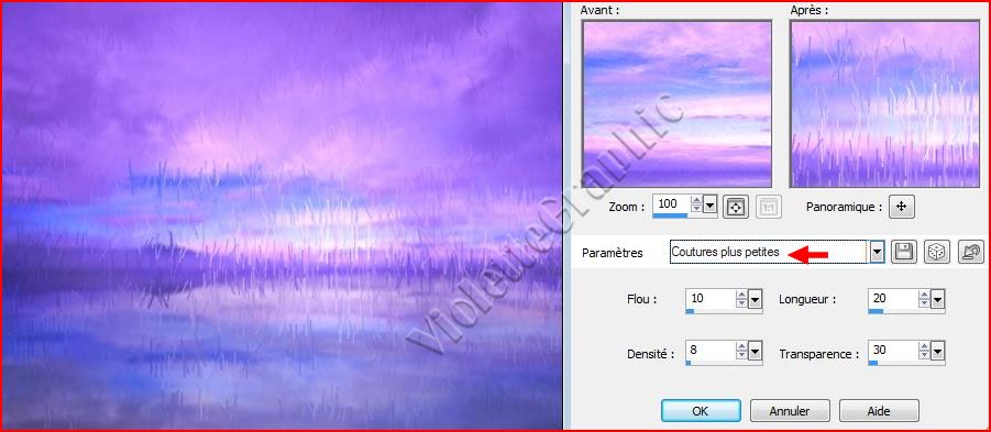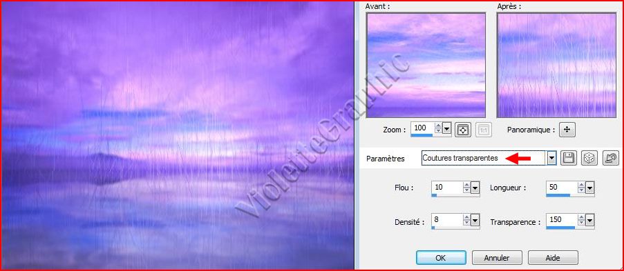 6 - Effets/Effets de Textures/Stores /Réglages suivants: Coutures Transparentes